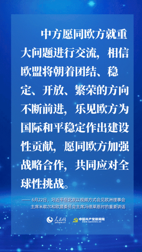在此次會(huì)見中,習(xí)近平指出,新冠肺炎疫情發(fā)生以來,中國和歐盟相互支持、相互幫助。中方愿同歐方攜手努力,推動(dòng)“后疫情時(shí)代”中歐關(guān)系更加穩(wěn)健成熟,邁向更高水平。