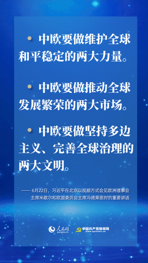 近些年來,中歐關(guān)系發(fā)展迅速,碩果累累。在本次這場特殊的“云會(huì)見”上,習(xí)近平如何定調(diào)“后疫情時(shí)代”的中歐關(guān)系?人民網(wǎng)·中國共產(chǎn)黨新聞網(wǎng)用八張海報(bào)為您梳理。