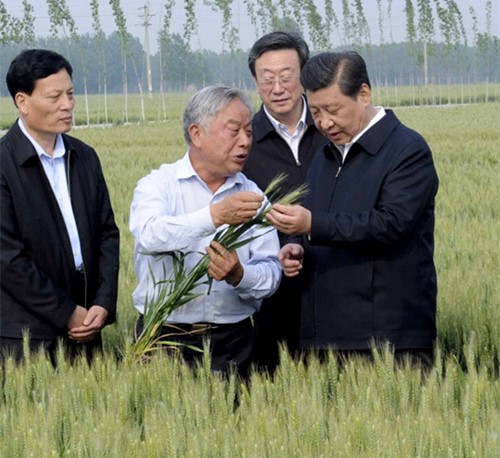 習(xí)近平在尉氏縣張市鎮(zhèn)高標(biāo)準糧田察看小麥長勢。(圖片來源:新華視點)