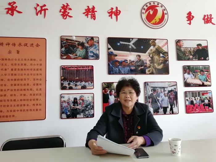 2016年,于愛梅發(fā)起成立沂蒙精神傳承促進(jìn)會,承擔(dān)起傳承、弘揚(yáng)沂蒙精神的重任,現(xiàn)有會員300余人。走訪慰問部隊(duì)哨所、各地開展宣講報告,年近七十的于愛梅足跡已遍布大半個中國。