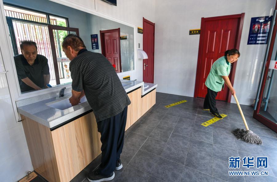 2020年6月13日,市民在河北省永清縣一處公廁內(nèi)洗手。永清縣將公廁建設(shè)作為創(chuàng)建文明城市的重要工程,在科學(xué)布局、高標(biāo)準(zhǔn)建設(shè)的基礎(chǔ)上,不斷提升公共服務(wù)水平,方便群眾。新華社記者 李曉果 攝