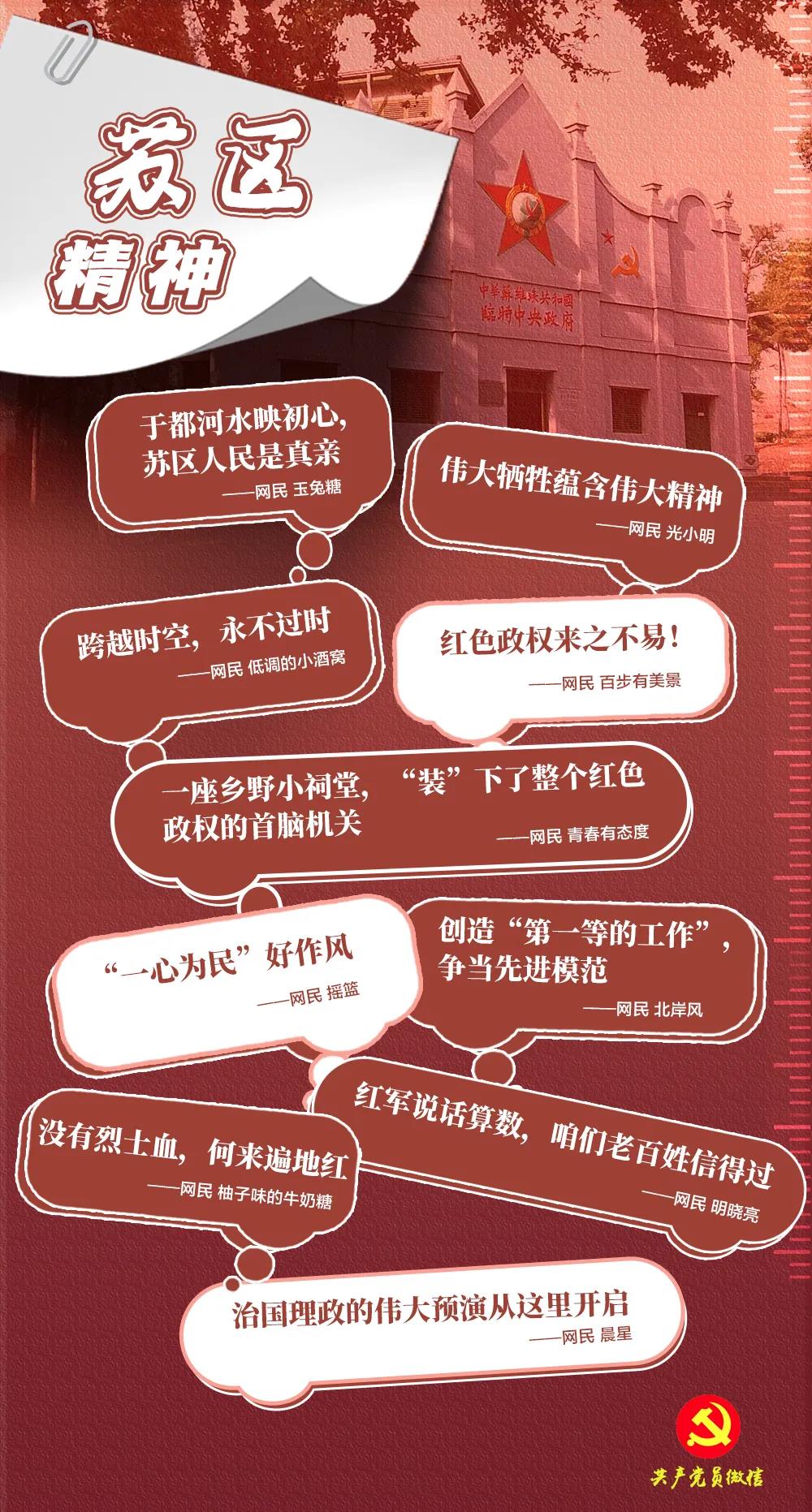 光陰流轉(zhuǎn),斗轉(zhuǎn)星移,“人民至上”的初心始終不渝。當(dāng)年蘇區(qū)如火如荼的革命斗爭(zhēng)已成歷史記憶,但偉大的蘇區(qū)精神仍然閃爍著新的時(shí)代光芒。社交平臺(tái)上的網(wǎng)民們關(guān)于蘇區(qū)精神的留言,再次讓我們感受到以堅(jiān)定信念、求真務(wù)實(shí)、一心為民、清正廉潔、艱苦奮斗、爭(zhēng)創(chuàng)一流、無私奉獻(xiàn)等為主要內(nèi)涵的蘇區(qū)精神的力量。這一精神是無數(shù)革命先輩用鮮血和生命鑄就的,是我們?nèi)谌胙}的信仰,有著生生不息的力量。