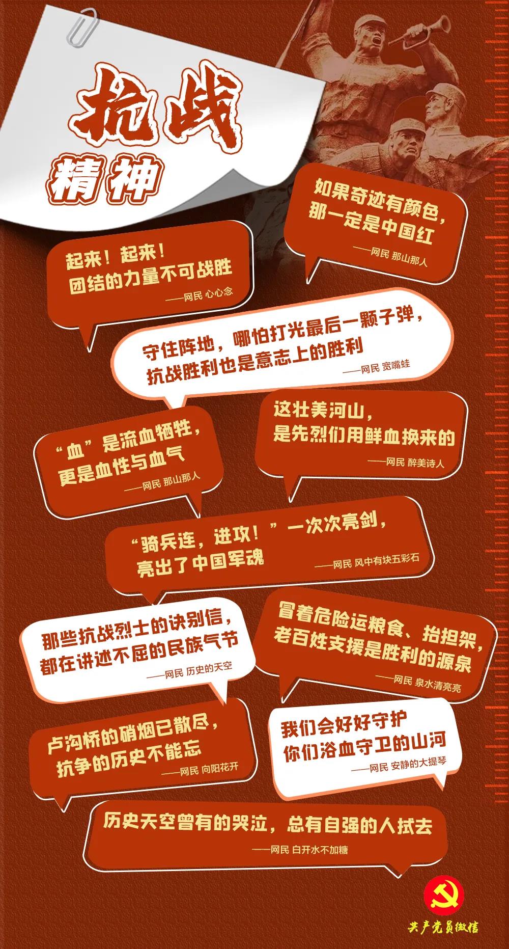 奮斗!我們要弘揚(yáng)偉大抗戰(zhàn)精神,以精神之力提升行動(dòng)自覺,牢牢擰成一股繩,在新征程上風(fēng)雨無阻向前進(jìn)!