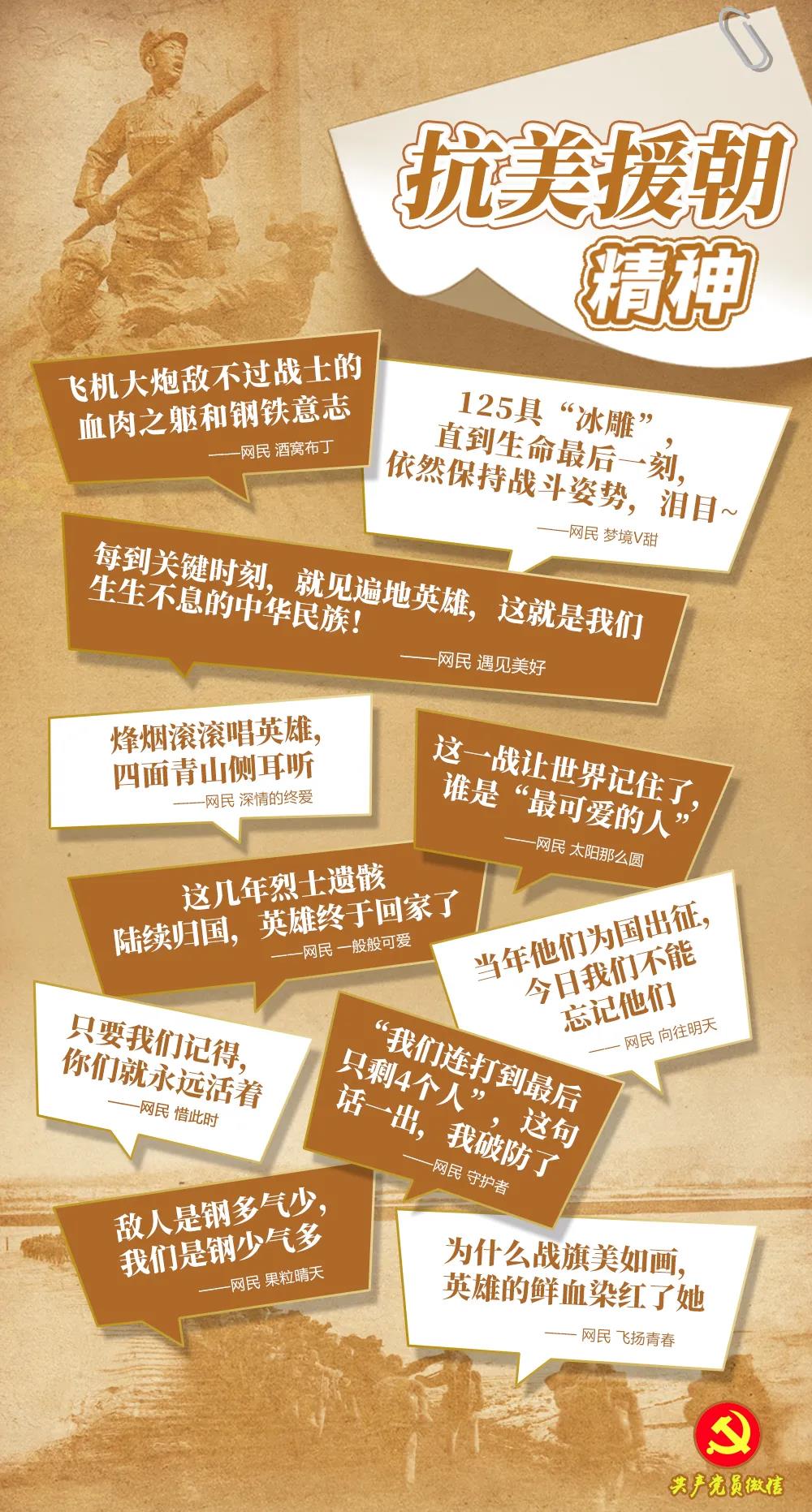 “為什么大地春常在,英雄的生命開鮮花!”如今,人們時(shí)時(shí)唱響這首歌曲,禮贊英雄、懷念英雄。多少年了,我們從來沒有忘記那場(chǎng)保家衛(wèi)國(guó)的戰(zhàn)爭(zhēng),沒有忘記和平是用鮮血和生命換來的,沒有忘記捍衛(wèi)國(guó)家尊嚴(yán)的忠魂英烈。正如網(wǎng)民在社交平臺(tái)上的留言,“每到關(guān)鍵時(shí)刻,就見遍地英雄,這就是我們生生不息的中華民族!”“只要我們記得,你們就永遠(yuǎn)活著”。這是對(duì)勝利最好的紀(jì)念,也是對(duì)英烈最好的告慰。