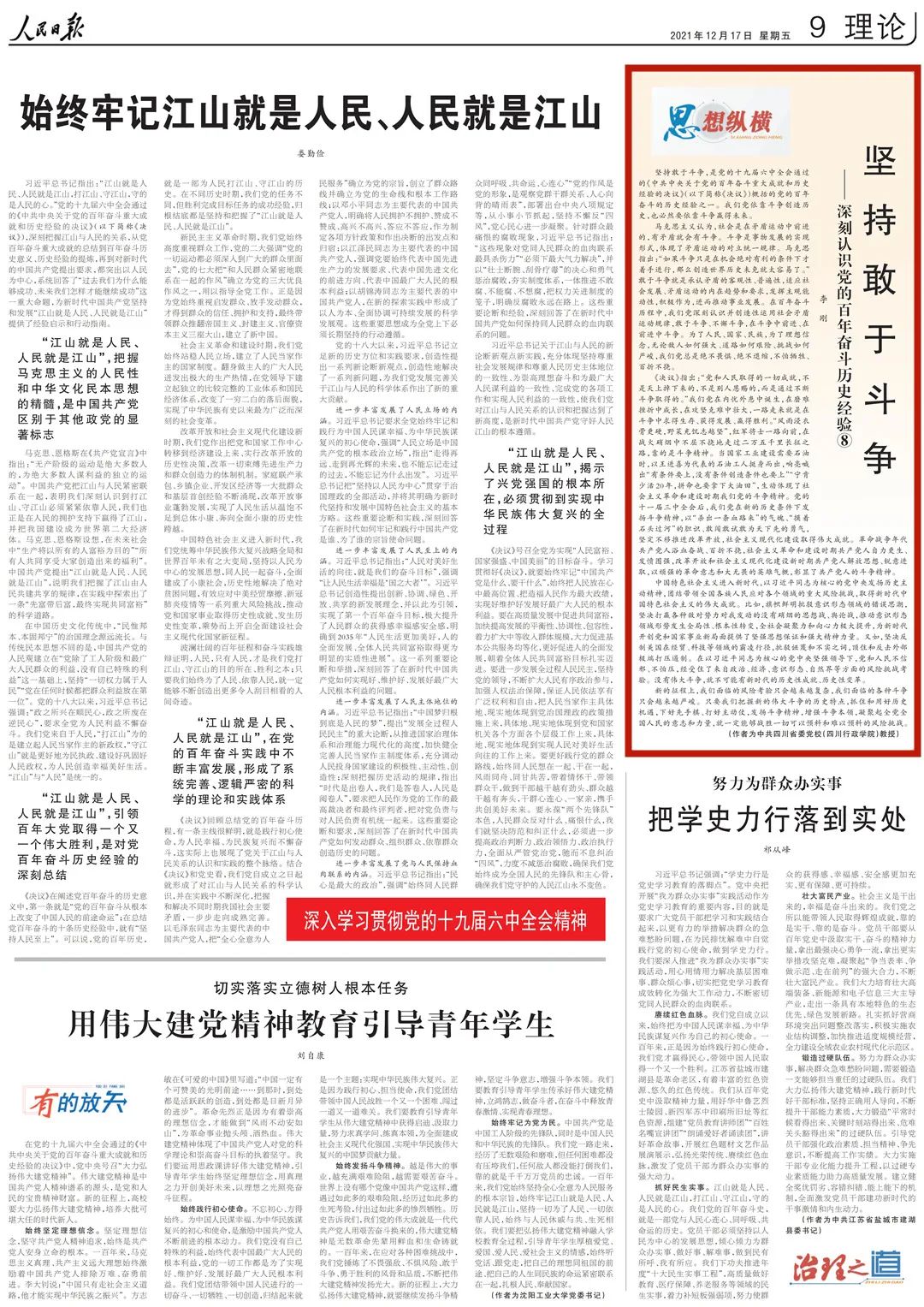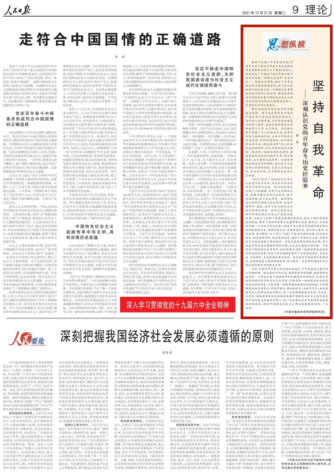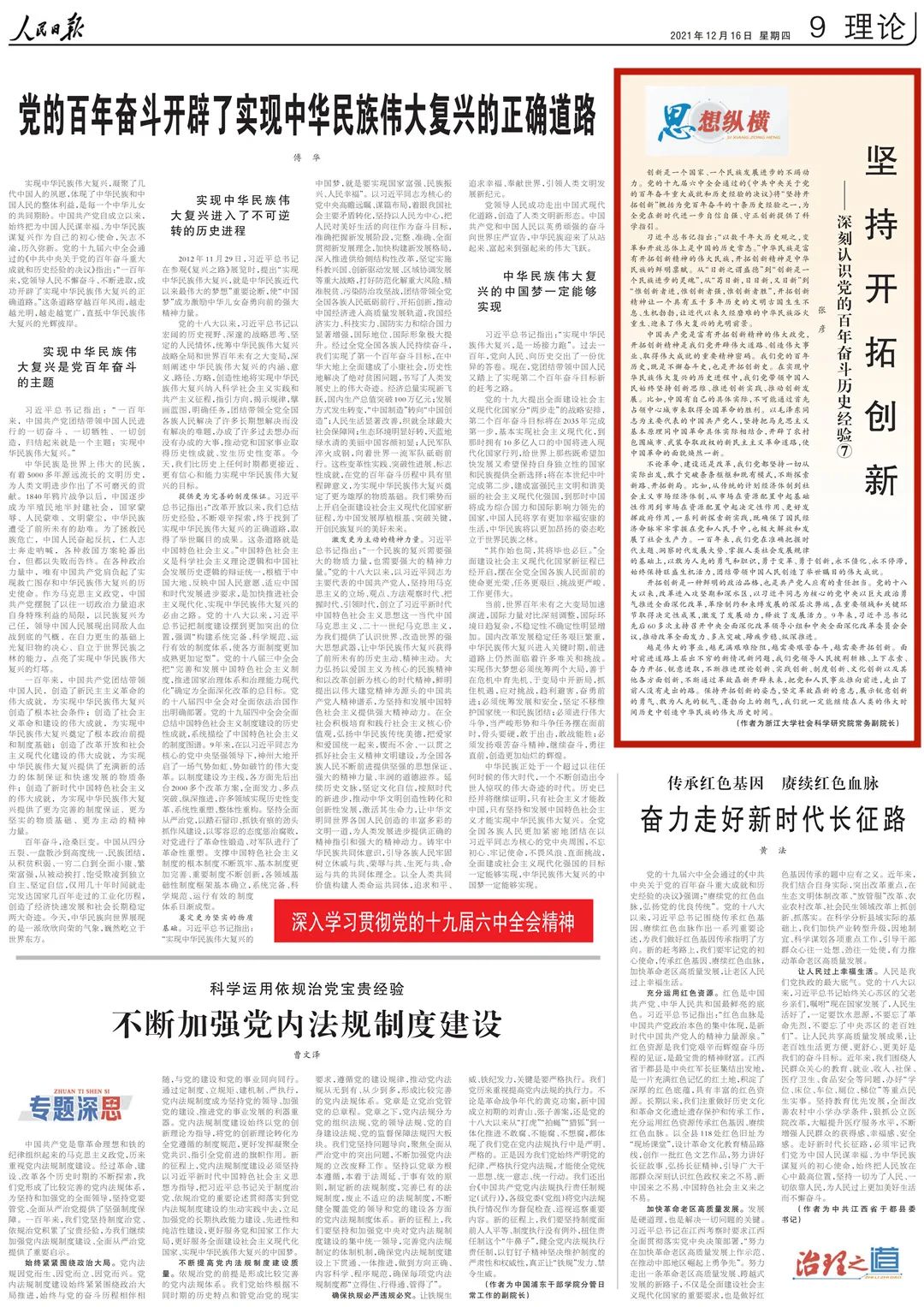 為幫助廣大讀者深刻認(rèn)識黨的百年奮斗歷史經(jīng)驗,《人民日報》理論版“思想縱橫”欄目近日連續(xù)刊發(fā)了10篇解讀文章,我們對此進(jìn)行了整理,供大家集中學(xué)習(xí)參考。
