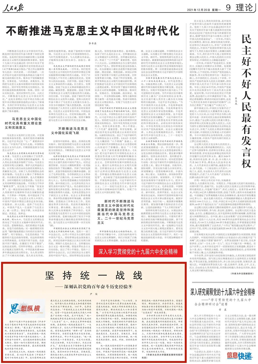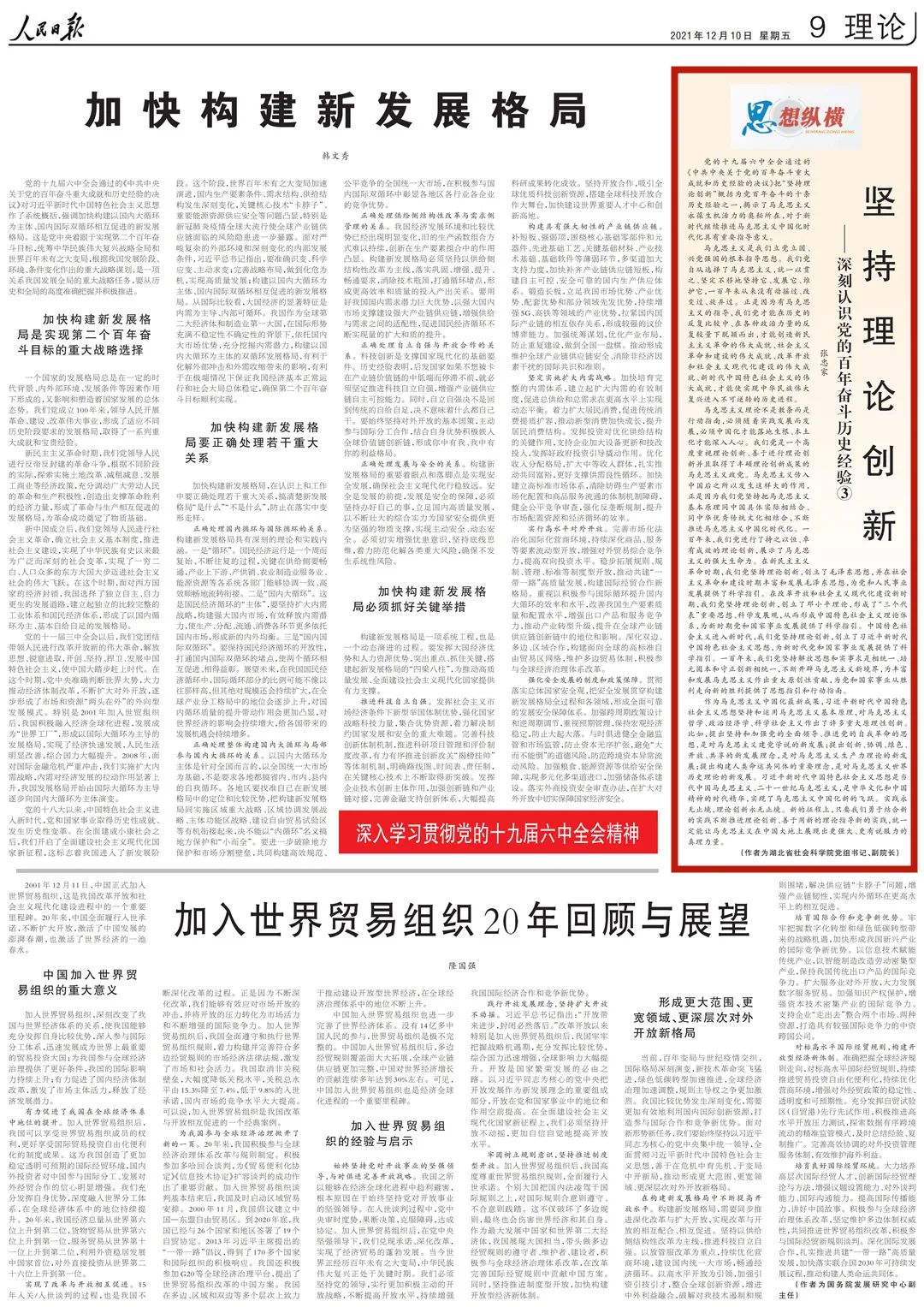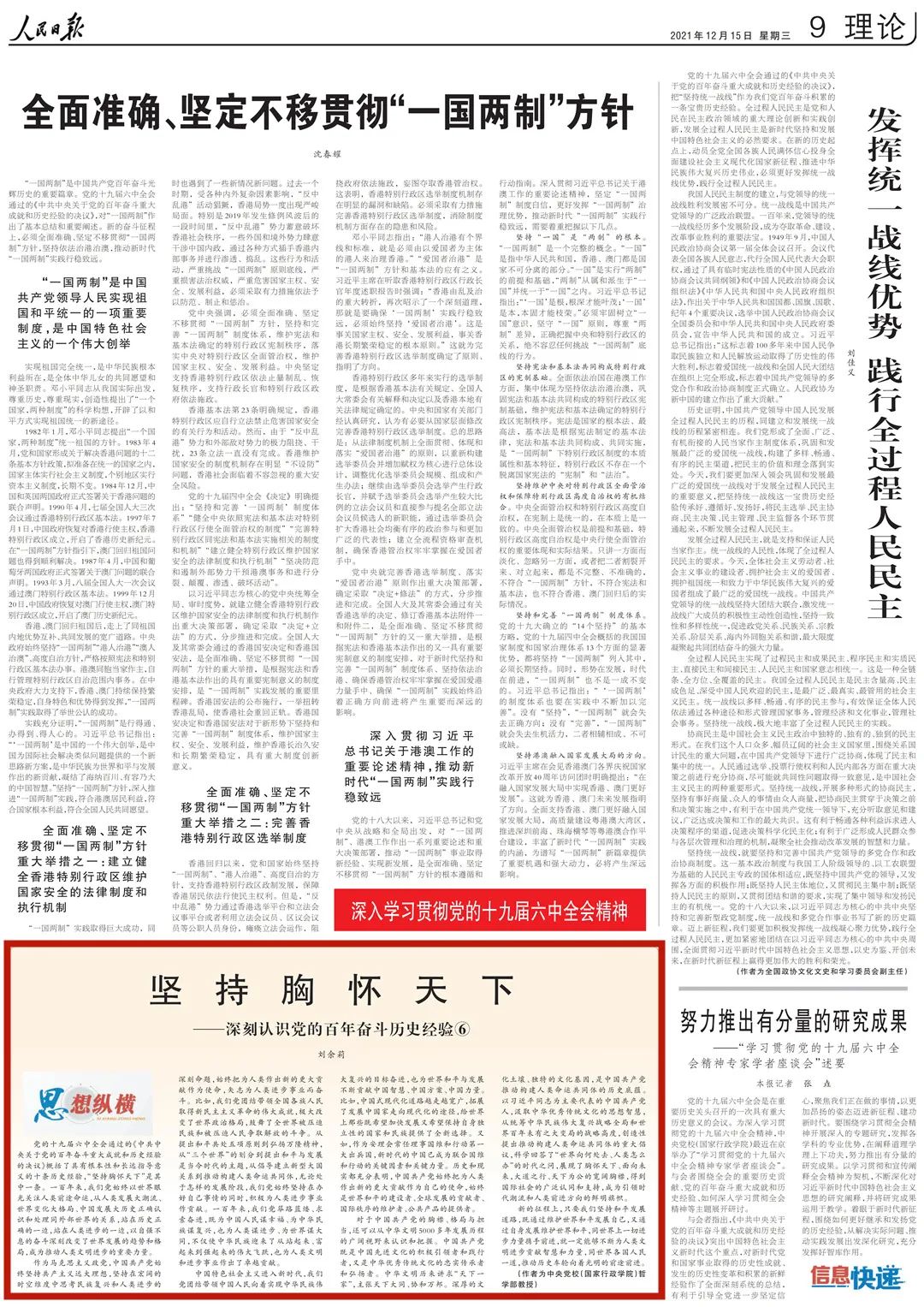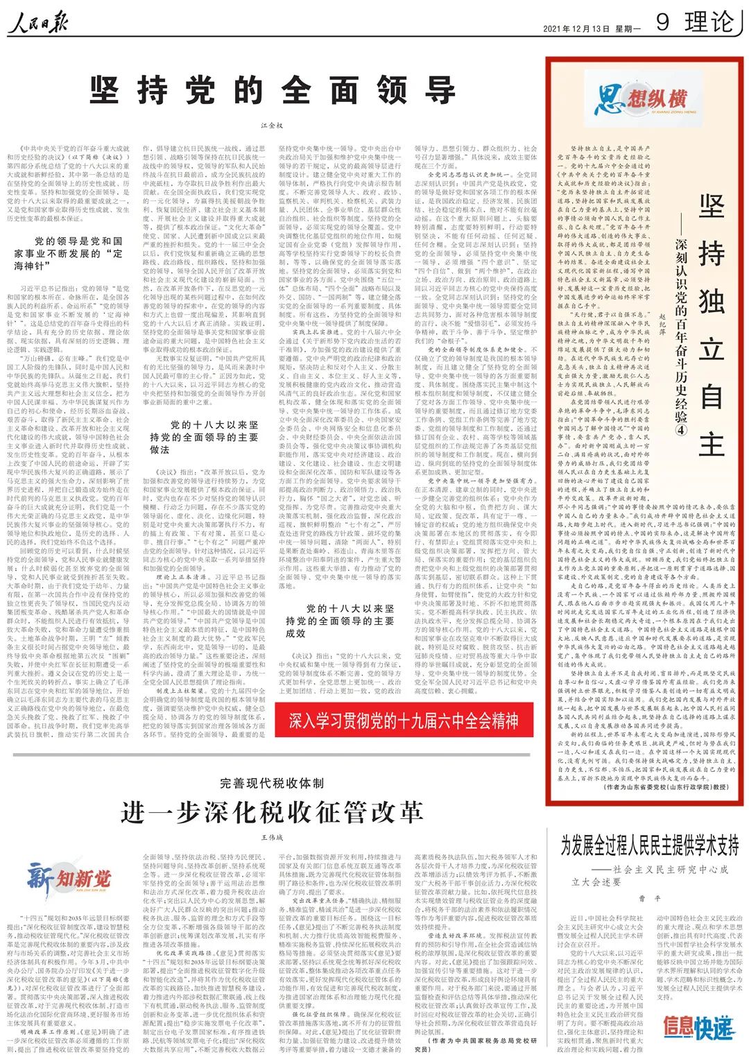 為幫助廣大讀者深刻認(rèn)識黨的百年奮斗歷史經(jīng)驗,《人民日報》理論版“思想縱橫”欄目近日連續(xù)刊發(fā)了10篇解讀文章,我們對此進(jìn)行了整理,供大家集中學(xué)習(xí)參考。