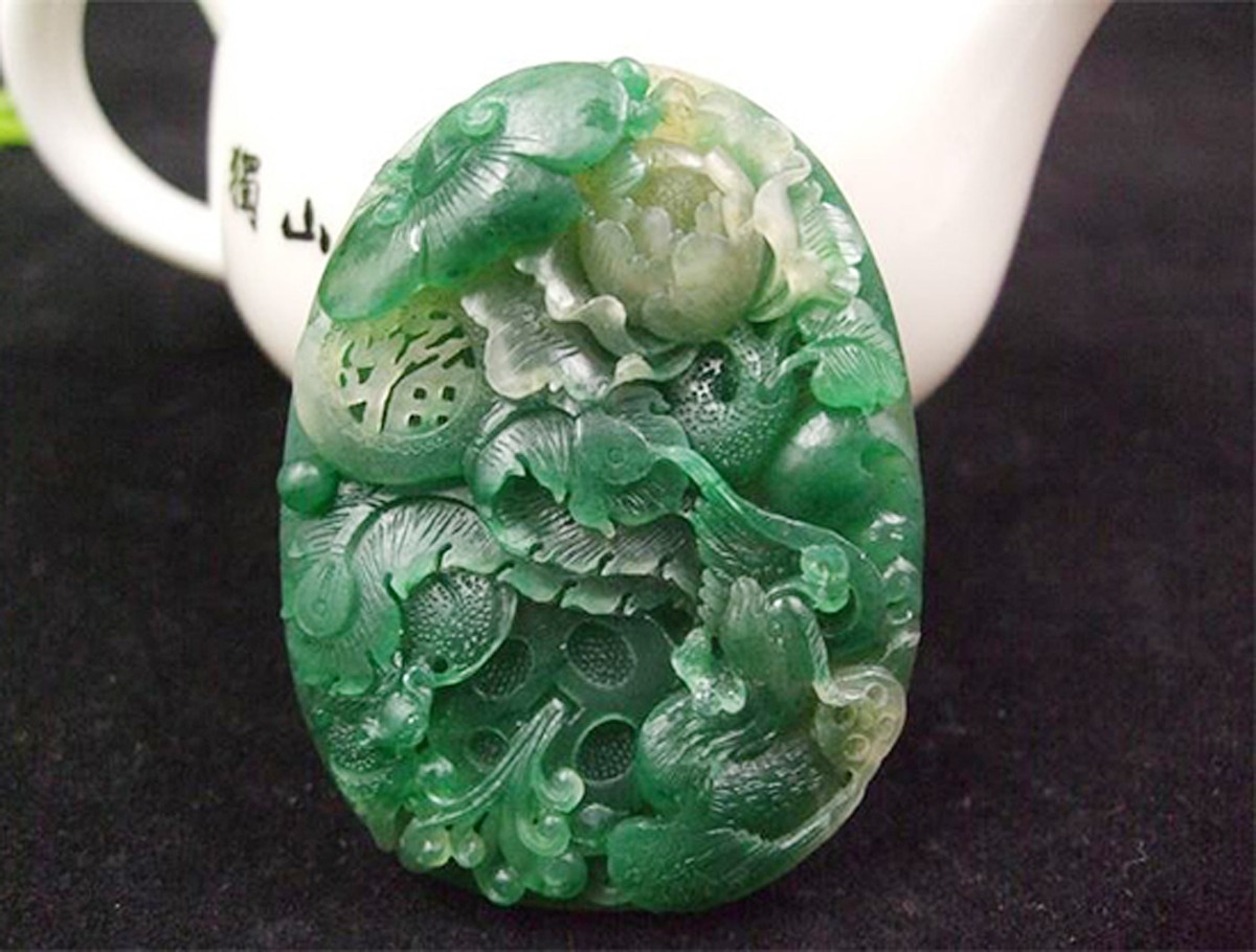 例如,有一塊極好的綠色翡翠,色澤純正,種水俱佳,唯一的缺點是中間有一小塊呈條狀的白色瑕疵。如要去除這一瑕疵,必然會損失很多極好的綠色部分,真讓人左右為難。最后,制作者把它雕成了一條又白又肥的蠶正在吃一片又綠又嫩的桑葉,不僅把白色的瑕疵巧妙地加以利用,而且整個作品栩栩如生,惟妙惟肖,宛若天成,讓人贊嘆不已。