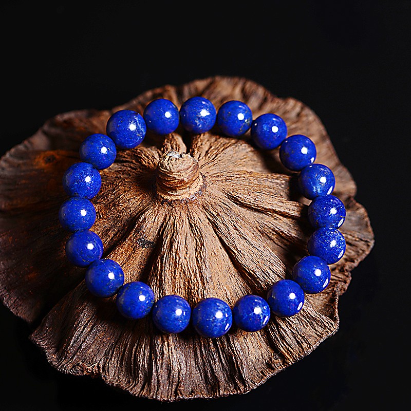 如今市場上也有人工合成的青金石,若是一整串青金石都是同一種色調(diào),沒有一絲雜色就要注意了,很可能是仿冒的。天然的青金石顏色不均,色調(diào)或有深淺,而合成青金石色調(diào)一致,顏色分布過于均勻。天然青金石質(zhì)地也較合成青金石通透,合成的不透明,感覺較死板,無靈性。若是分布有金色的黃鐵礦,天然的青金石中的金色往往不規(guī)則,輪廓呈斑狀或條紋狀。合成的青金石中的金色為黃鐵礦粉末碎,均勻分布,輪廓較平直。另外,合成的青金石密度較低,孔隙多,若是放于水中重量會有少許上升。