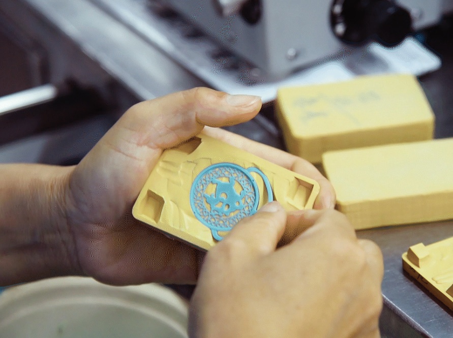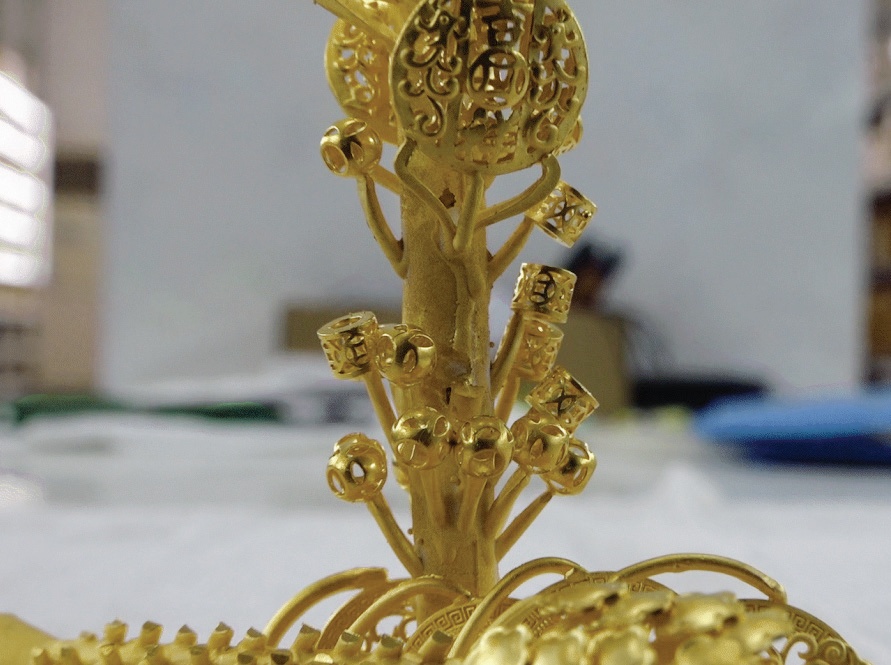 最后將“金樹”上的產(chǎn)品剪下,并對(duì)產(chǎn)品進(jìn)行修整,使其達(dá)到造型優(yōu)美、表面平整。經(jīng)過表面工藝、車花、成品拋光等流程后,倒模工藝的金飾品就制作完成了。