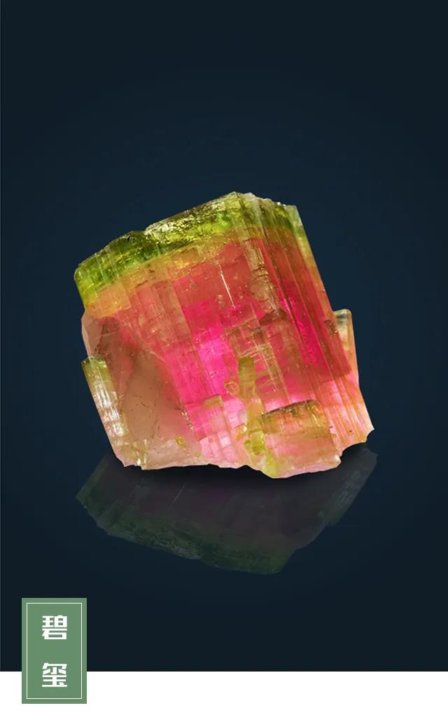 碧璽是電氣石的工藝品名,也是電氣石“家族”里達到珠寶級的一個種類。作為一種硼硅酸鹽結(jié)晶體,碧璽含有鋁、鐵、鎂、鈉、鋰、鉀等多種化學(xué)元素,成分復(fù)雜,因此呈現(xiàn)出色彩斑斕、如彩虹般絢爛美麗的顏色。