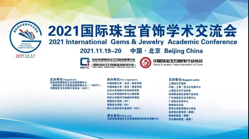 2021國際珠寶首飾學術(shù)交流會(以下簡稱學術(shù)交流會)于2021年11月19日至20日以視頻會議+直播的方式在北京召開。本屆學術(shù)交流會以“融合創(chuàng)新、數(shù)字賦能、智贏未來”為主題,由自然資源部珠寶玉石首飾管理中心(國家珠寶玉石質(zhì)量監(jiān)督檢驗中心)【以下簡稱珠寶國檢(NGTC)】和中國珠寶玉石首飾行業(yè)協(xié)會(GAC)【以下簡稱中寶協(xié)(GAC)】主辦,中國地質(zhì)大學(北京)珠寶學院、中國地質(zhì)大學(武漢)珠寶學院、北京大學地球與空間科學學院、中山大學地球科學與工程學院、同濟大學海洋與地球科學學院、泰國寶石學院(GIT)、印度寶石學院(GII)、瑞士古柏林寶石鑒定所(GGL)協(xié)辦,自然資源部珠寶玉石首飾檢驗評價技術(shù)創(chuàng)新中心承辦。