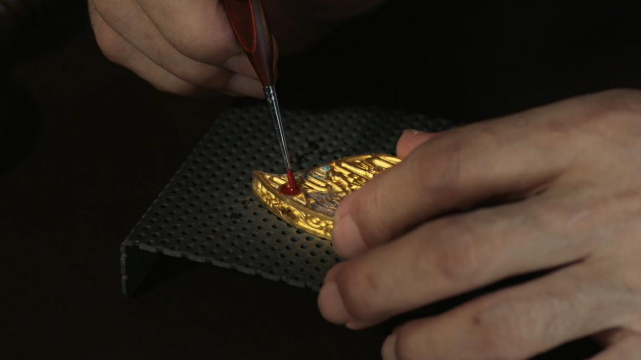 景泰藍(lán)工藝又稱為“銅胎掐絲琺瑯”,是一種瓷銅結(jié)合的獨特工藝品。它以紫銅做胎,工藝師在銅胎上作畫,再用銅絲按照圖案粘于銅胎上,接著用色彩不同的琺瑯釉料填在銅絲圍成的格間,最后經(jīng)過高溫?zé)?、磨光而成?/p>