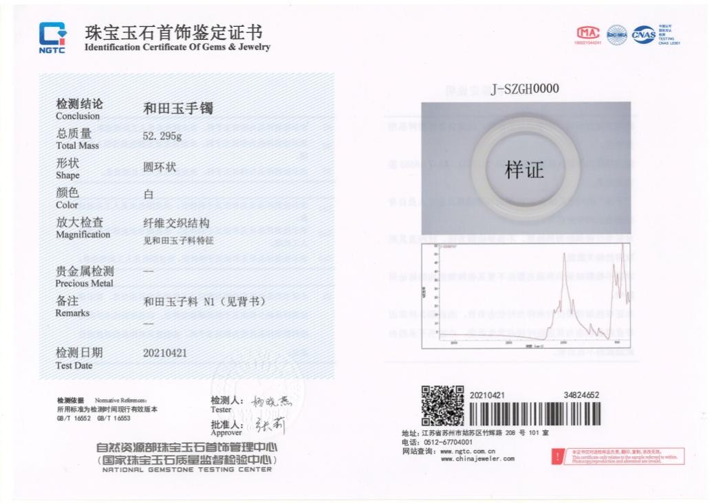 ▲珠寶國檢和田玉子料鑒定證書樣證