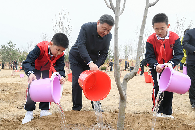 習(xí)近平在參加首都義務(wù)植樹活動(dòng)時(shí)強(qiáng)調(diào):倡導(dǎo)人人愛綠植綠護(hù)綠的文明風(fēng)尚 共同建設(shè)人與自然和諧共生的美麗家園
