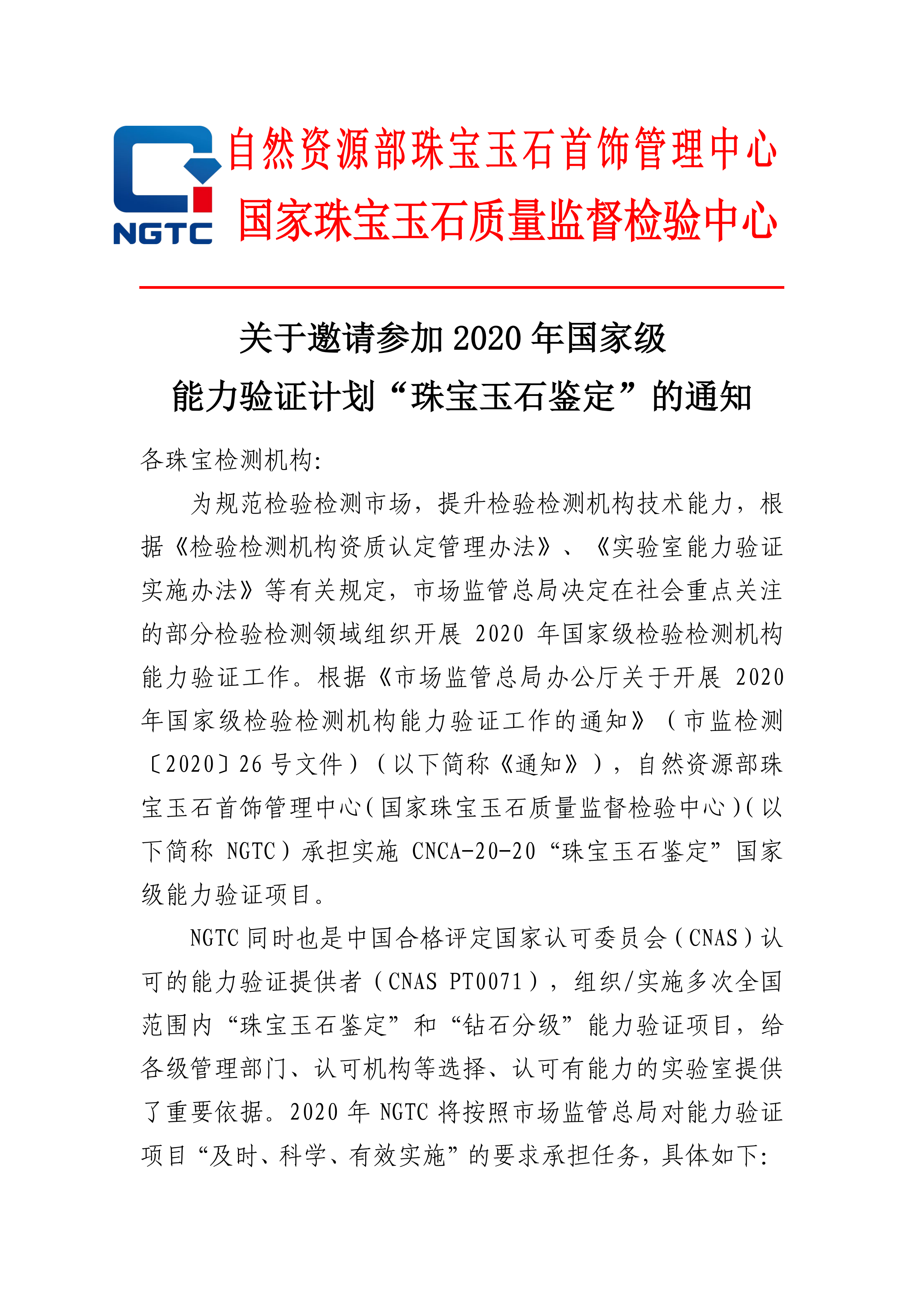 關(guān)于邀請參加2020年國家級能力驗證計劃“珠寶玉石鑒定”的通知