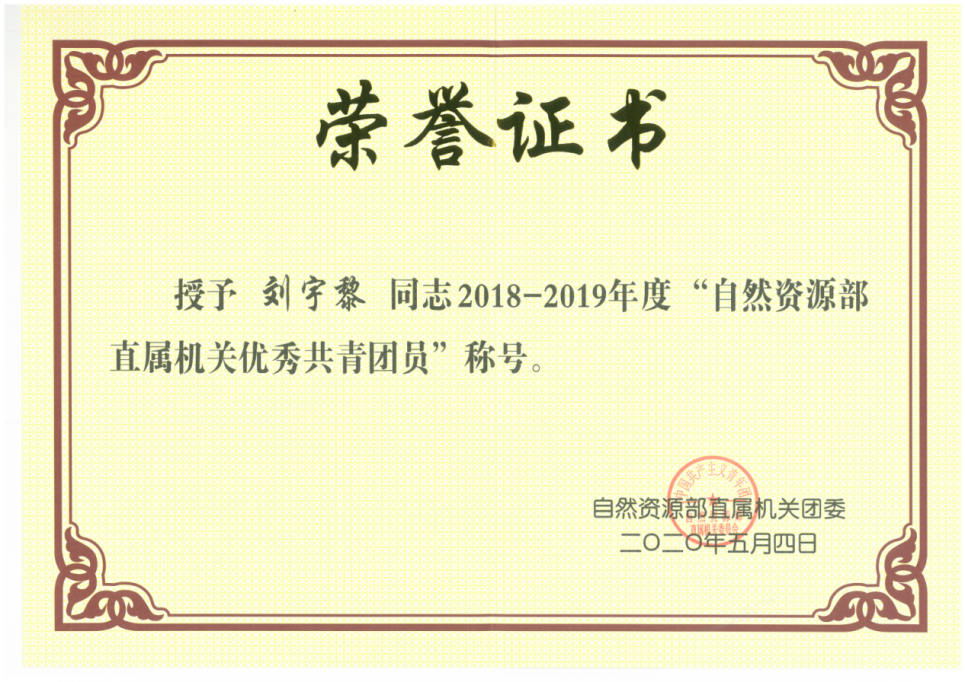 2018-2019年度“自然資源部直屬機(jī)關(guān)優(yōu)秀共青團(tuán)員”——NGTC深圳實(shí)驗(yàn)室劉宇黎、GAC蔣夢真事跡分享