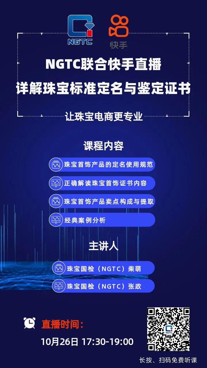 那就不能錯過10月26日(下周一)17:30—19:00,珠寶國檢(NGTC)聯(lián)合快手開展的主題網(wǎng)絡(luò)培訓(xùn)直播,詳解珠寶標(biāo)準(zhǔn)定名與鑒定證書,讓珠寶電商更專業(yè)。屆時(shí)珠寶國檢(NGTC)國檢珠寶培訓(xùn)中心商學(xué)院院長柴萌、珠寶國檢(NGTC)北京實(shí)驗(yàn)室張政將直擊珠寶直播賣貨痛點(diǎn),教你如何“反套路真營銷”!