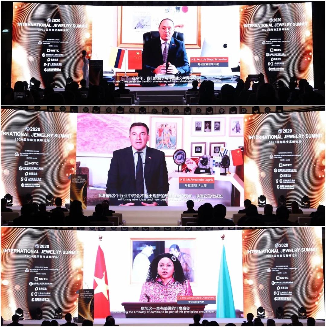 哥倫比亞駐華大使Luis Diego Monsalve、烏拉圭駐華大使Fernando Lugris、贊比亞駐華大使Winnie Natala Chibesakunda 通過視頻演講,表達(dá)了對第三屆進(jìn)博會(huì)及2020國際珠寶高峰論壇成功舉行的祝賀。