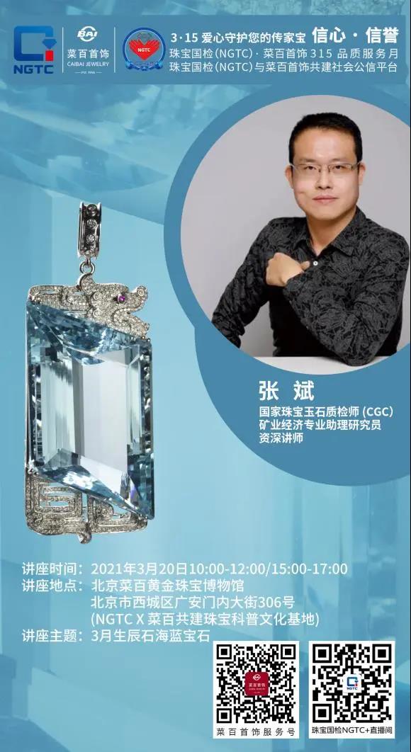 珠寶國(guó)檢(NGTC)與菜百共建社會(huì)公信平臺(tái)專(zhuān)為少兒科普開(kāi)辟的“珠寶國(guó)檢(NGTC)與菜百科普文化基地”,將在2021年3月20日,春分節(jié)氣,迎著明媚的春光,與北京的小朋友們相約菜百。NGTC國(guó)檢珠寶培訓(xùn)中心資深講師、商學(xué)院副院長(zhǎng)張斌在菜百總店將以珠寶國(guó)檢(NGTC)權(quán)威的科研、檢測(cè)、教育成果為基礎(chǔ),為近百位北京師生家長(zhǎng)帶來(lái)寶石礦物學(xué)科普講座——3月生辰石·海藍(lán)寶石。精彩內(nèi)容涵蓋如下: