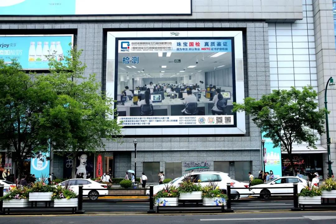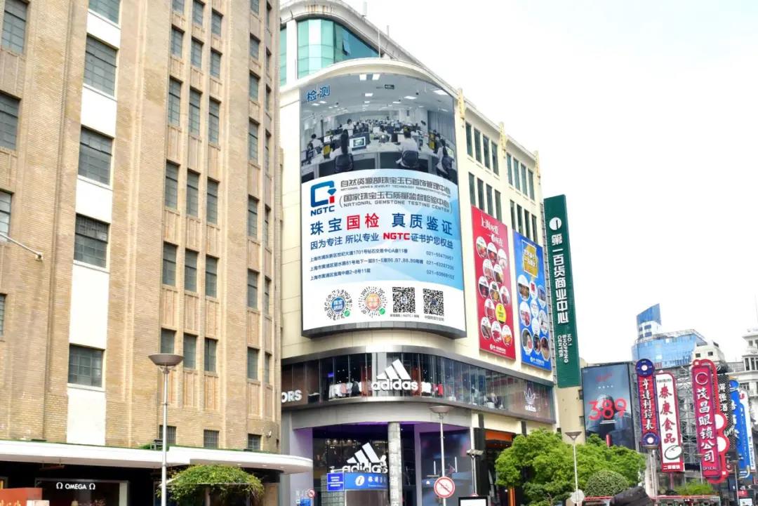 珠寶國檢(NGTC)上海淮海路商圈蘭生大廈都市大屏投放效果圖