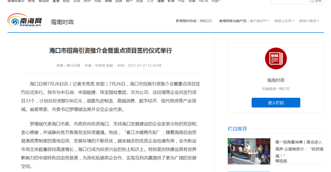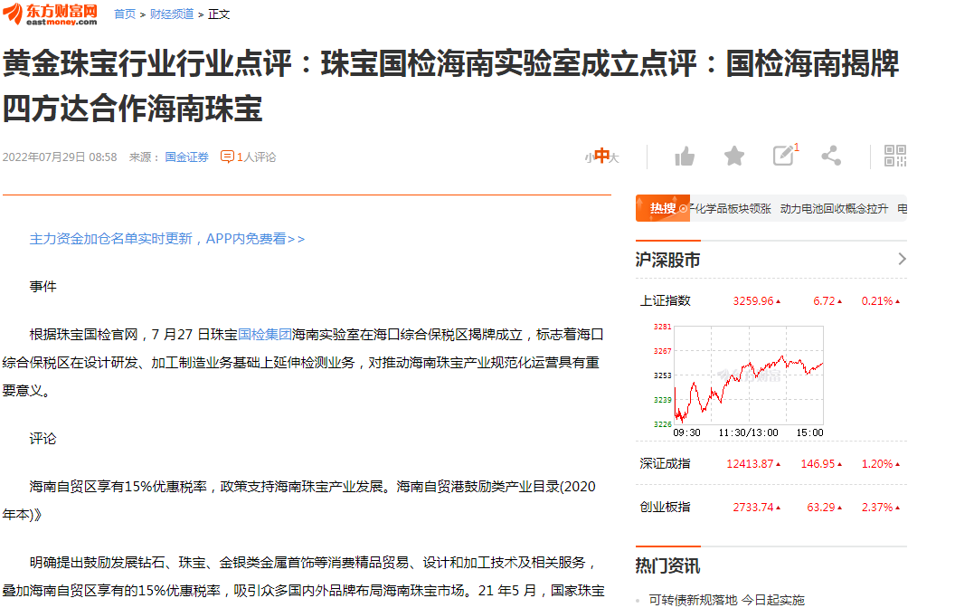 7月25日-30日,珠寶國檢集團受邀參加第二屆中國國際消費品博覽會(下簡稱消博會),作為權(quán)威的國家級珠寶檢測機構(gòu),珠寶國檢集團為消博會提供的綜合科技服務(wù)得到參展商、采購商、消費者的一致好評;在消博會期間,珠寶國檢集團受邀出席海口市招商引資推介會暨重點項目簽約儀式,珠寶國檢集團海南實驗室正式揭牌,以科技服務(wù)海南自貿(mào)港珠寶玉石產(chǎn)業(yè)發(fā)展。以上系列服務(wù)與舉措獲得海南電視臺新聞頻道、海南日報、海南日報客戶端、??谌請蟮让襟w的關(guān)注與報道。