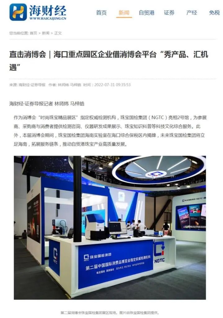 第二屆中國國際消費品博覽會媒體集中報道,為珠寶國檢集團科技服務(wù)點贊