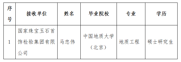 國家珠寶玉石首飾檢驗(yàn)集團(tuán)有限公司2022年度擬接收高校畢業(yè)生情況公示