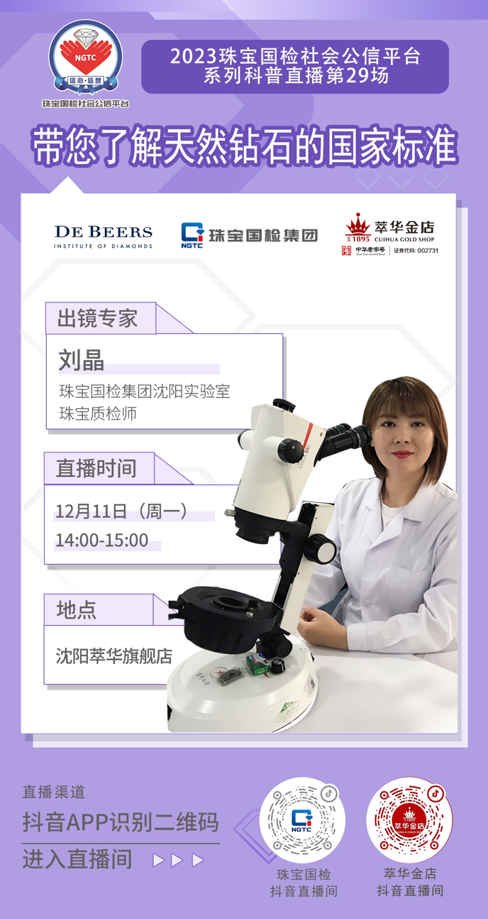 【2023珠寶國檢社會(huì)公信平臺系列科普直播第二十九場】直播預(yù)熱:帶您了解天然鉆石的國家標(biāo)準(zhǔn)