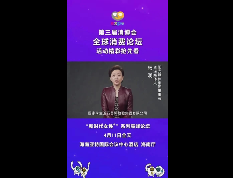 楊瀾:消博會和“新時代女性+”系列高峰論壇我們不見不散!