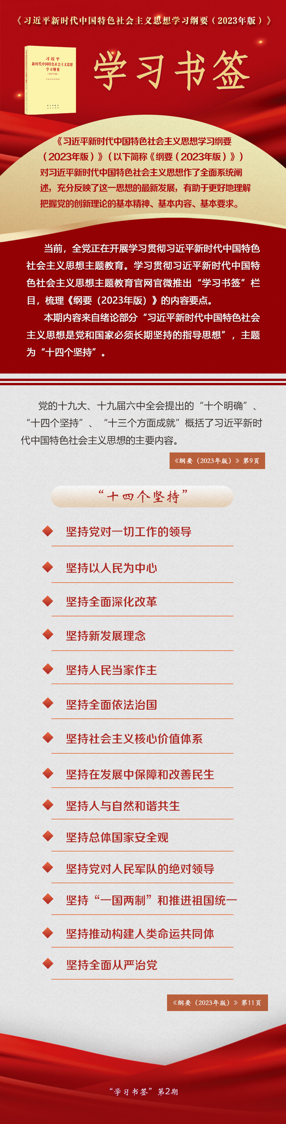 《習(xí)近平新時代中國特色社會主義思想學(xué)習(xí)綱要(2023年版)》 學(xué)習(xí)書簽丨“十四個堅持”