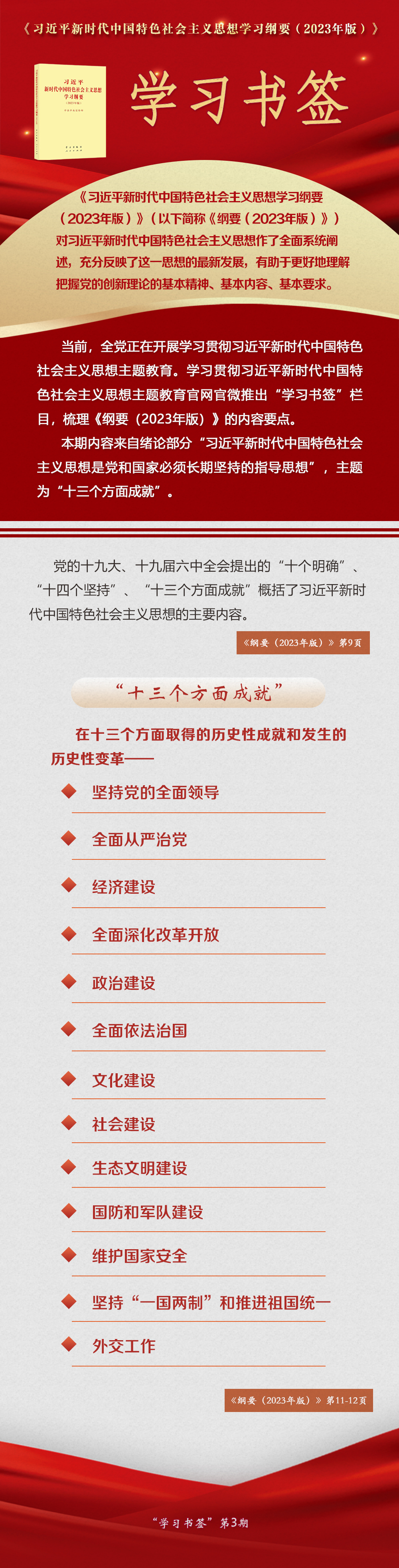 《習(xí)近平新時(shí)代中國(guó)特色社會(huì)主義思想學(xué)習(xí)綱要(2023年版)》 學(xué)習(xí)書簽丨“十三個(gè)方面成就”
