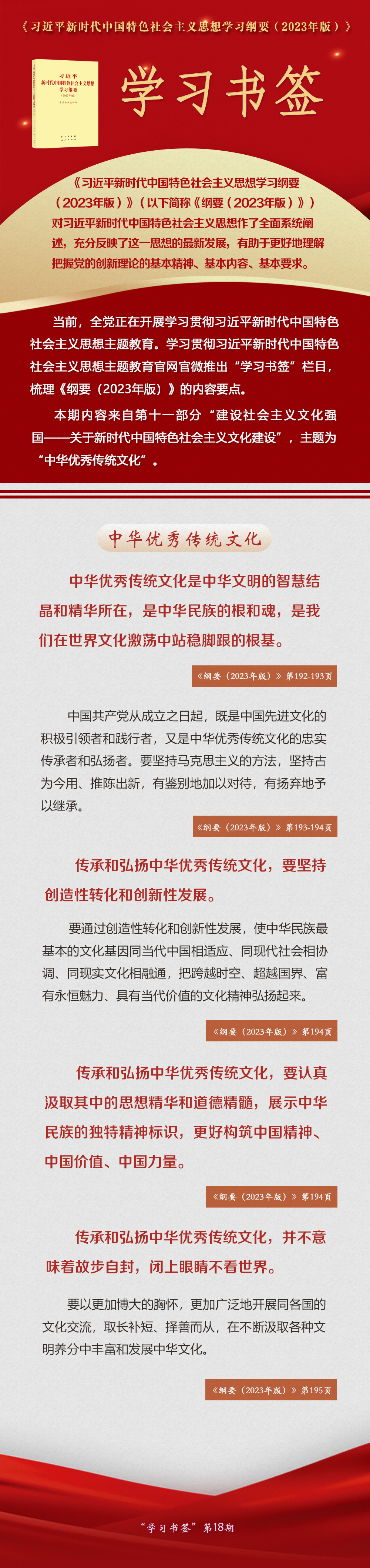 《習(xí)近平新時(shí)代中國(guó)特色社會(huì)主義思想學(xué)習(xí)綱要(2023年版)》 學(xué)習(xí)書簽丨中華優(yōu)秀傳統(tǒng)文化