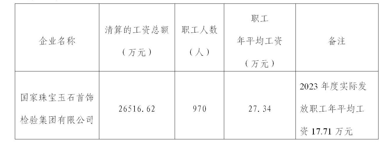 2023年自然資源部監(jiān)管企業(yè)國(guó)家珠寶玉石首飾檢驗(yàn)集團(tuán)有限公司工資分配信息披露