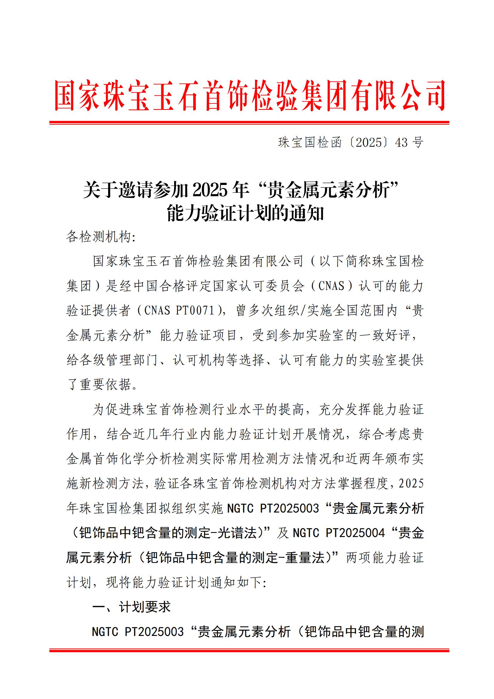 關(guān)于邀請參加 2025 年“貴金屬元素分析”能力驗證計劃的通知