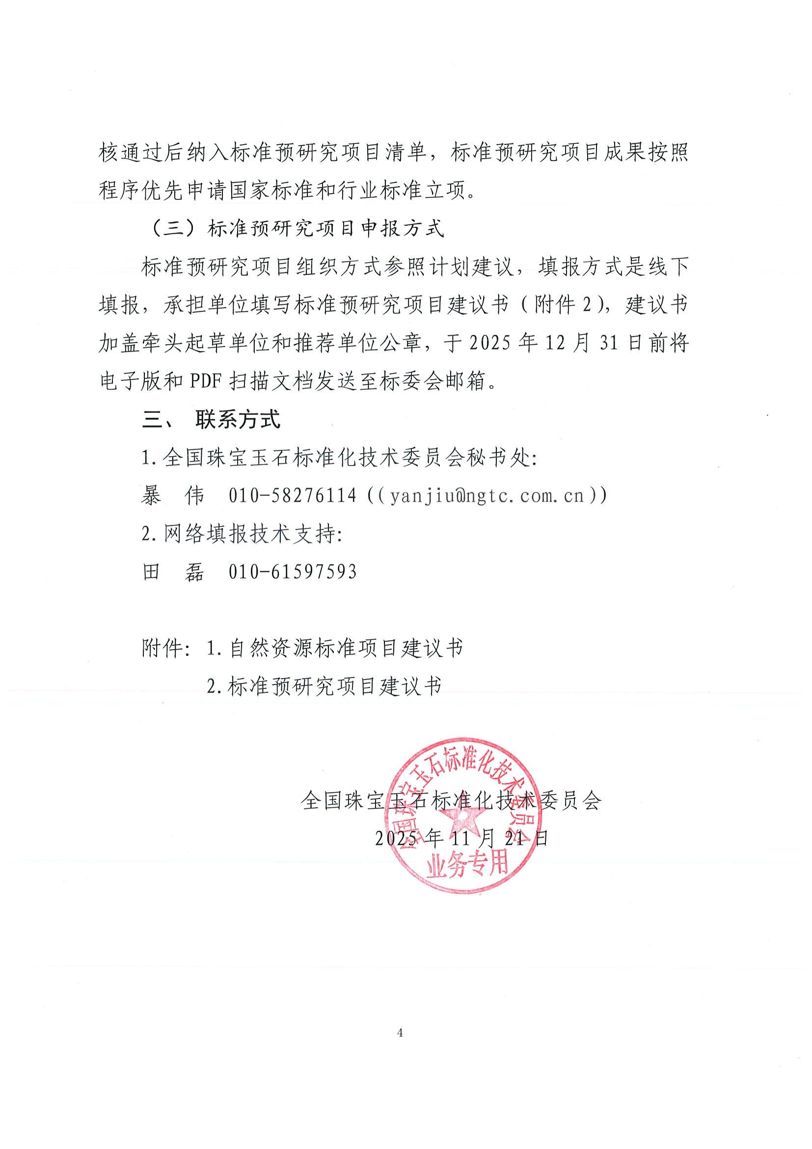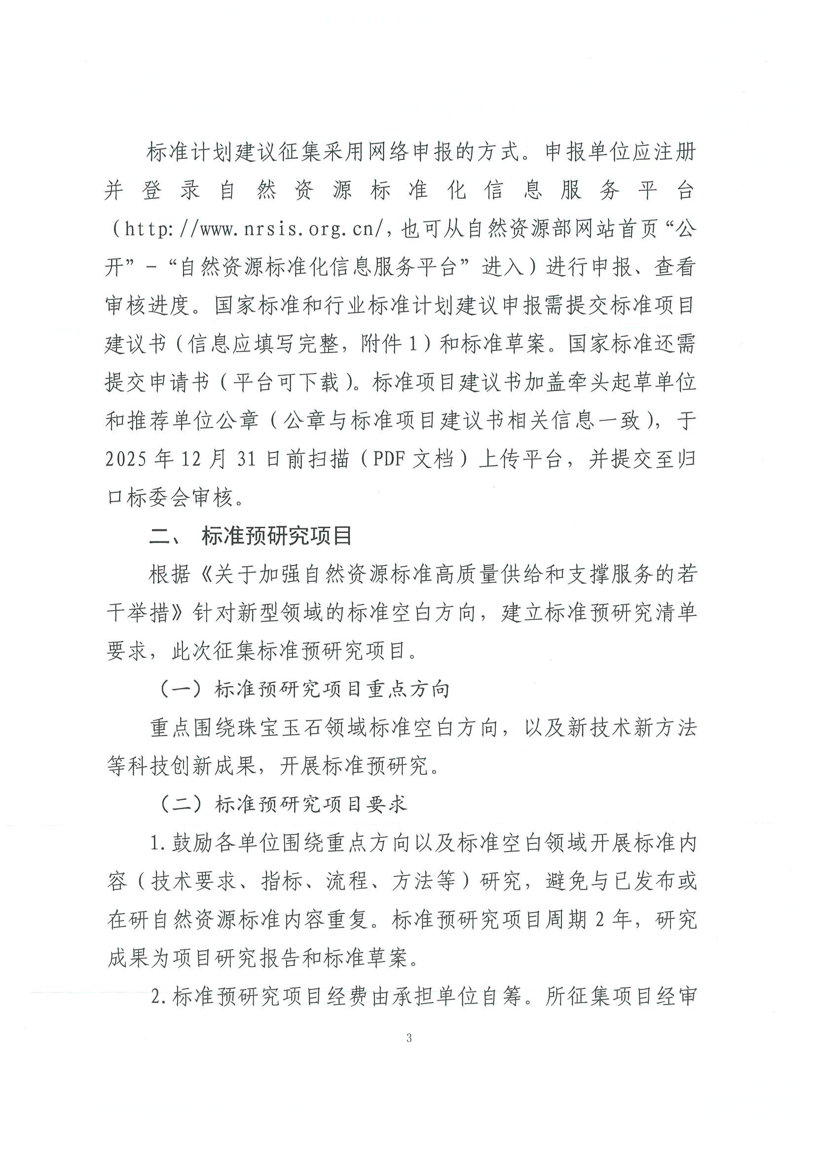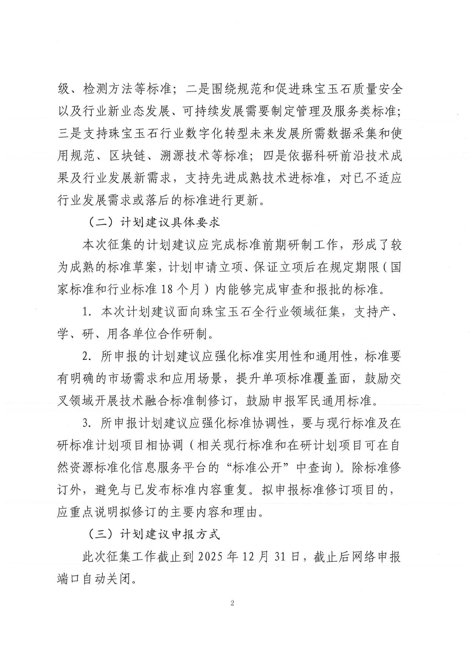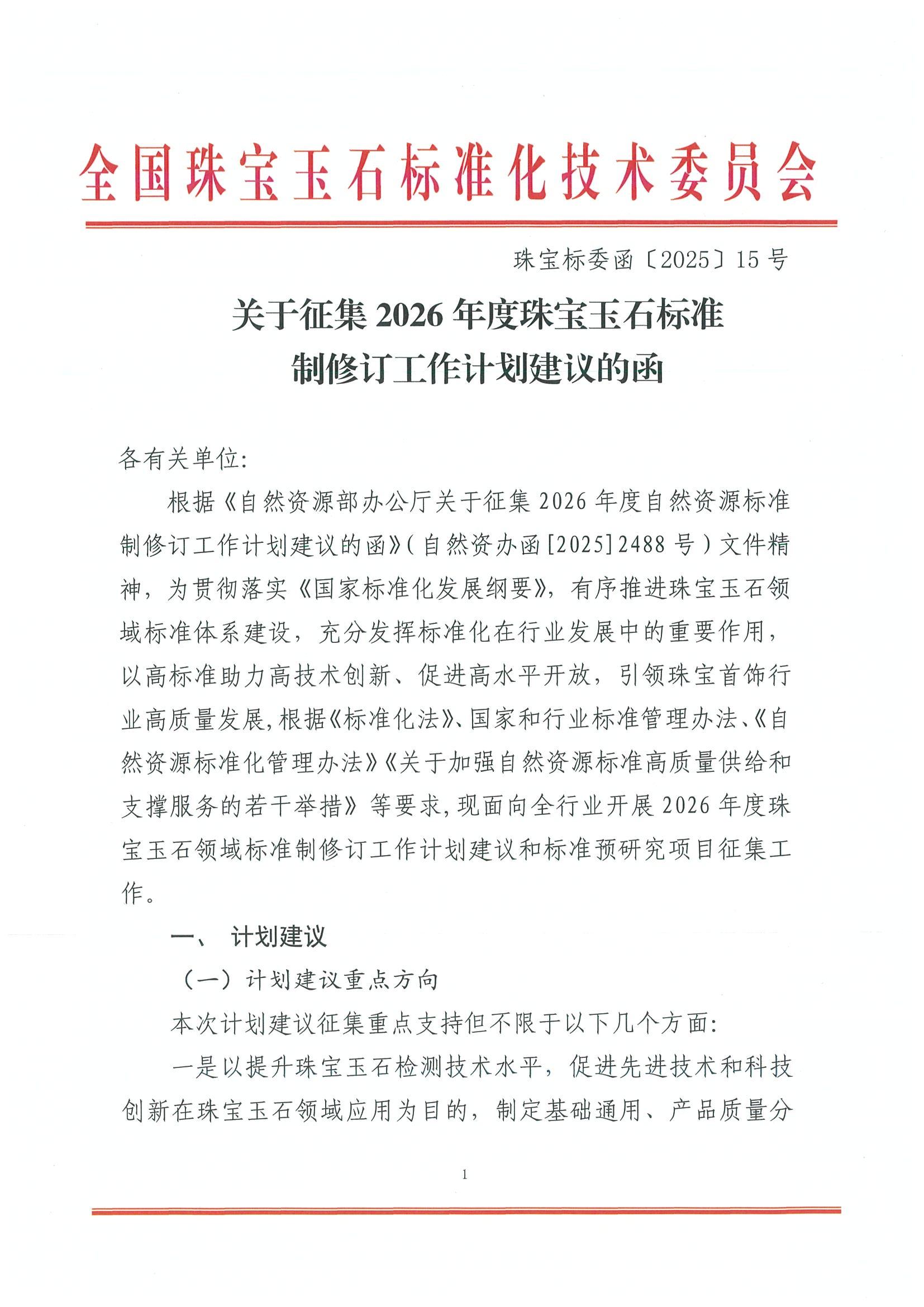 關(guān)于征集2026年度珠寶玉石標(biāo)準(zhǔn)制修訂工作計劃建議的函