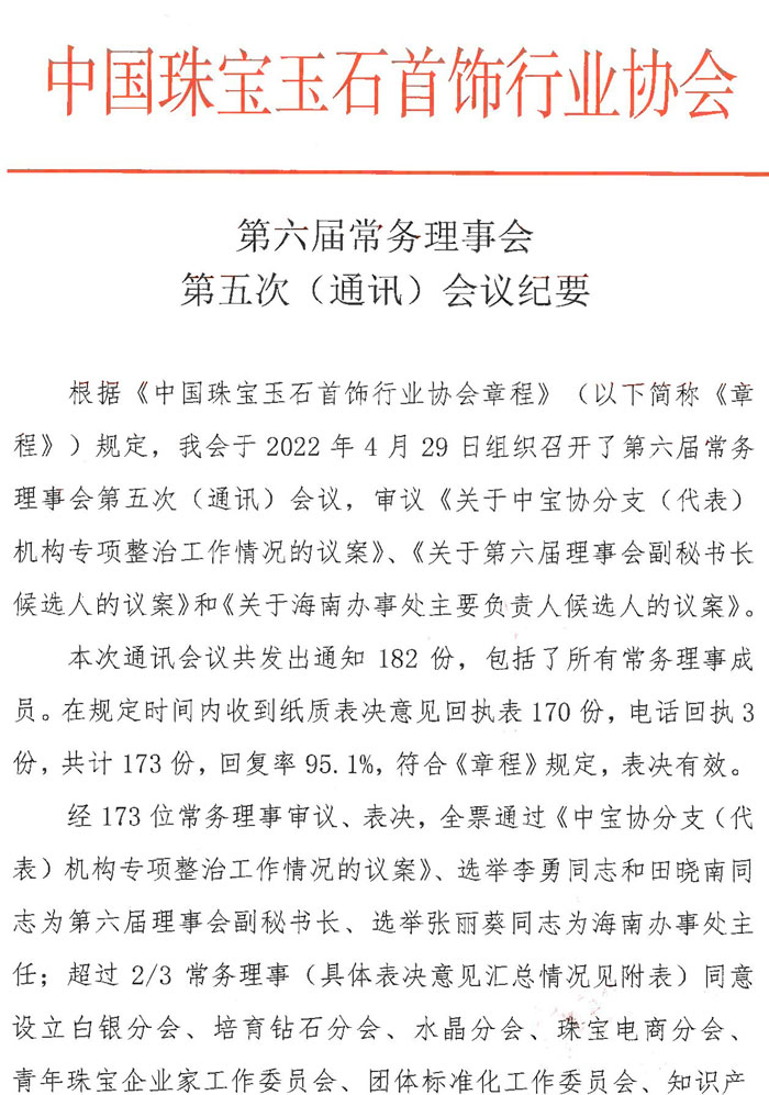 第六屆常務(wù)理事會(huì)第五次(通訊)會(huì)議紀(jì)要