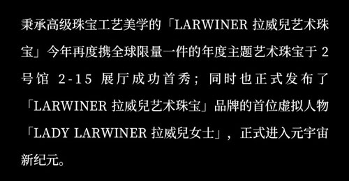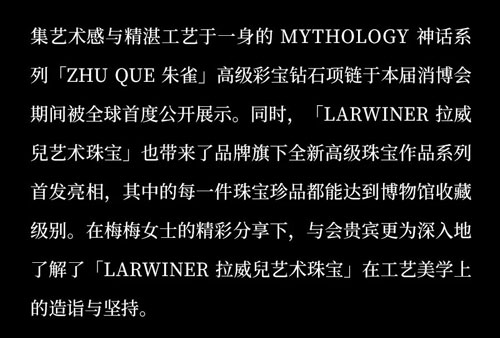 LARWINER拉威兒藝術珠寶再度驚艷亮相消博會LARWINER拉威兒藝術珠寶再度驚艷亮相消博會