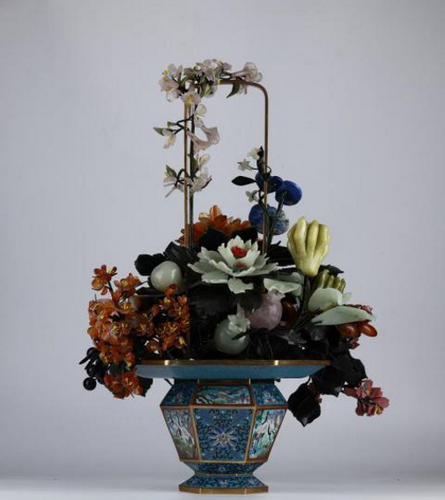 翡翠提梁花籃《群芳攬勝》