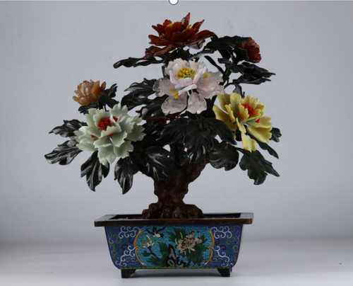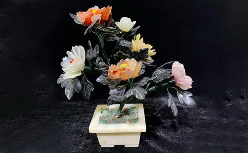 在此次參展的玉雕作品中,具有古代宮廷玉雕風(fēng)格的“玉石盆景”將精彩亮相。這些“玉石盆景”運用了碧玉、岫玉、瑪瑙、松石、芙蓉石、東陵石、水晶、紫水晶等玉料,工藝步驟復(fù)雜,玉料顏色豐富多彩,其上花朵與枝葉造型栩栩如生。